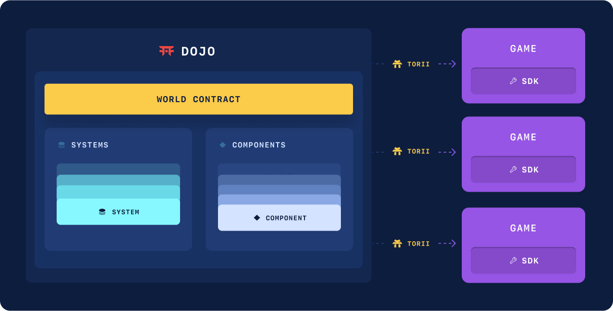 Dojo adapts ECS for the onchain environment with three core concepts: